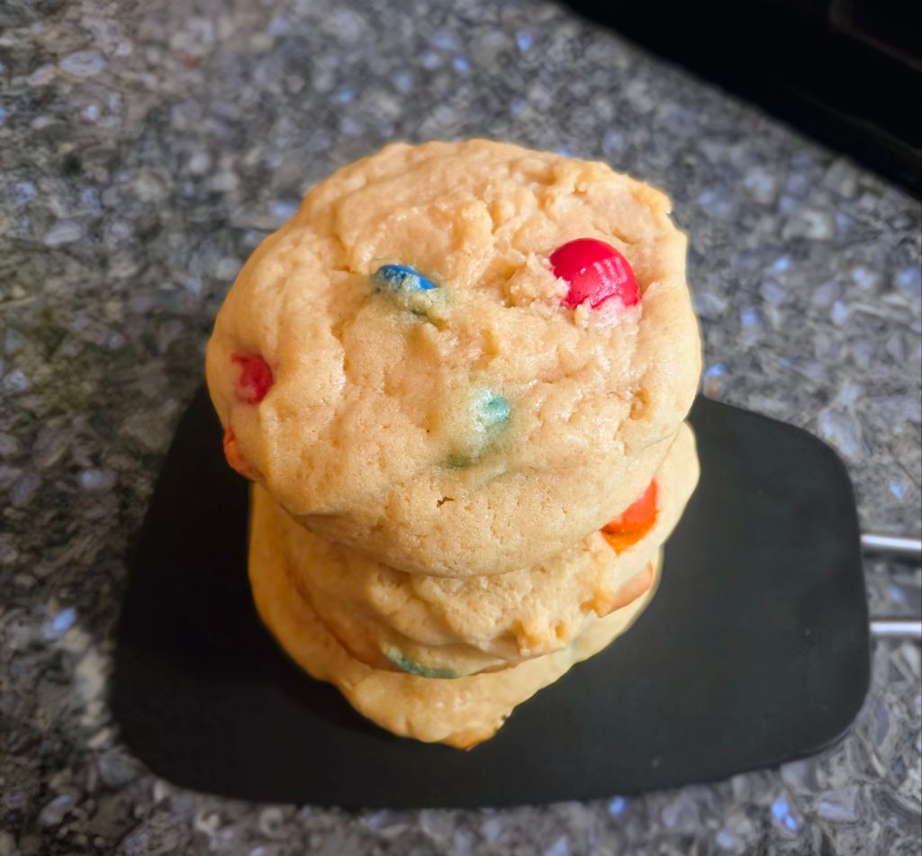Directions – in a bowl, combine sugar and vegetable oil. Add eggs and vanilla. Blend in flour, baking soda and salt. Scoop out individual doughs and form tall mounds. Freeze and hiur or to. When ready to bake, preheat oven to 375 degrees. Line a cookie sheet with parchment paper and stack cookies on sheet. Bake 9 to 11 minutes, no longer. Pop in fridge to firm up and cool, as cookies may be gushy.