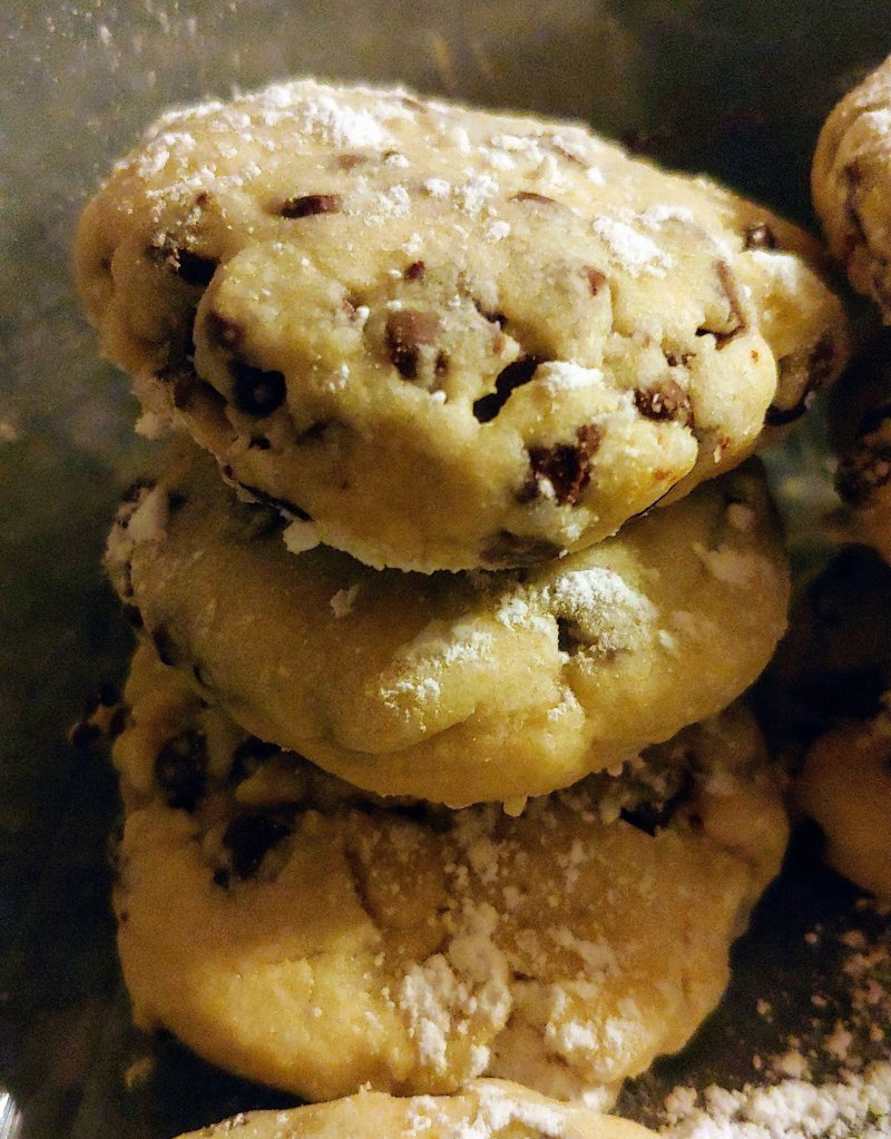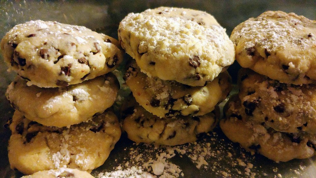 I got a new container of black cocoa today and wanted to put some of it to use, so I made some black cocoa snowballs with mini chocolate chips. Always good to heat up the oven on a very chilly day!