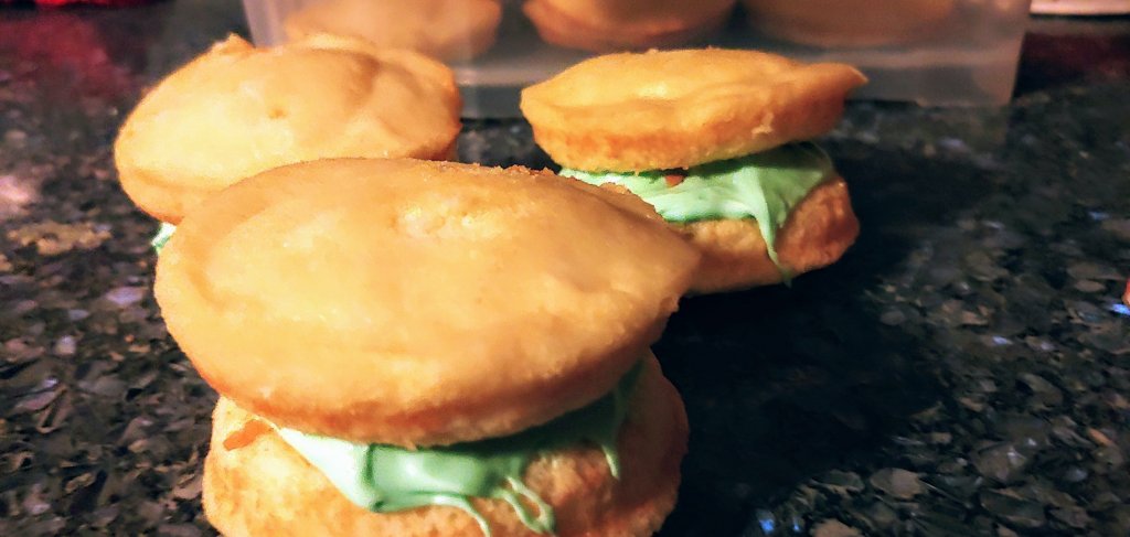 I figured I would up my treats game with the NFL super wildcard weekend. The Bills win over the Patriots was the best game I ever saw played by a Bills team. Just about everything went right and Josh Allen was flawless. Such a performance deserves a special cookie. So I present the smores whoopie pie – a Graham cracker cookie, fluff filling and melted chocolate on top. Each cookie is 1/4 cup of dough. The final whoopie pie is quite large, so next time I may only use 2 tbs dough for each cookie. Although I don’t expect any complaints at work with XL cookies